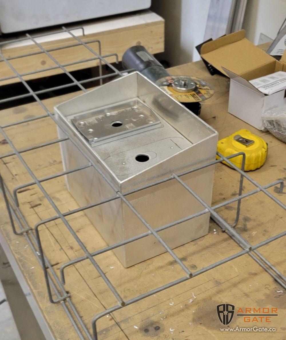 Custom intercom box fabricated to suite "gabian" style stone wall